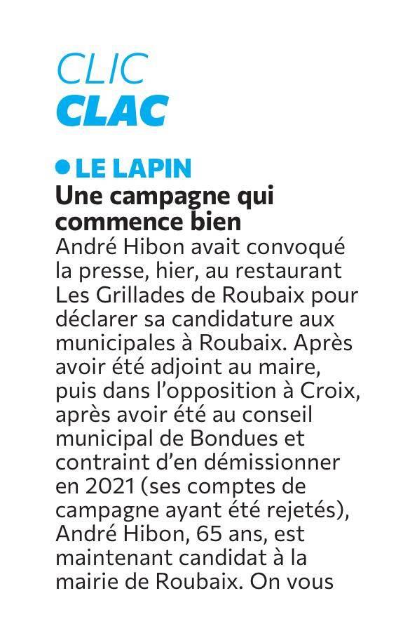 La conférence de presse initialement prévue le 4 octobre a été reportée au samedi 11 octobre à 11h, au restaurant Les Grillades (65 rue de l’Alma, Roubaix).